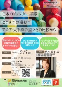 【申込フォーム】国際理解セミナー「日本のジェンダー平等、どうすれば進む?アジア・太平洋の国々との比較から 」